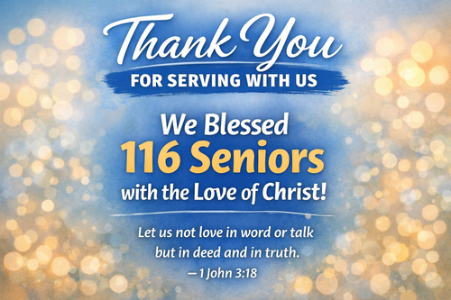 Because of your generosity, compassion, and obedience to God’s call, our Senior Care Outreach was made possible. Every gift, every item donated, every prayer offered, and every hand that served helped us bring comfort, dignity, and the love of Jesus to 116 seniors in our community.